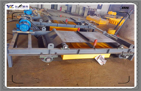 工作時(shí)除鐵器懸掛在輸送皮帶的上方,當(dāng)輸送的物料經(jīng)過除鐵器的強(qiáng)磁場(chǎng)時(shí),混雜在物料中的鐵磁性物質(zhì)在除鐵器的強(qiáng)磁吸引力的作用下,被牢牢吸附在卸鐵皮帶上,同時(shí)通過驅(qū)動(dòng)電機(jī)驅(qū)動(dòng)皮帶運(yùn)轉(zhuǎn)將鐵磁性物質(zhì)拋出現(xiàn)場(chǎng),從而達(dá)到自動(dòng)除鐵的目的。